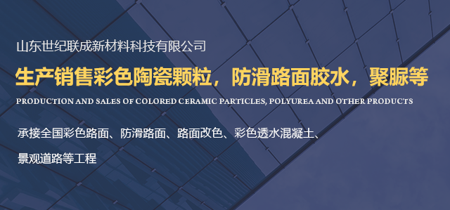 山東世紀(jì)聯(lián)成新材料科技有限公司,我公司生產(chǎn)銷售彩色陶瓷顆粒、彩色防滑膠水、聚脲等。我公司有經(jīng)驗(yàn)豐富的施工團(tuán)隊(duì),承接全國(guó)彩色路面、防滑路面、路面改色、彩色透水混凝土、景觀道路、等工程。